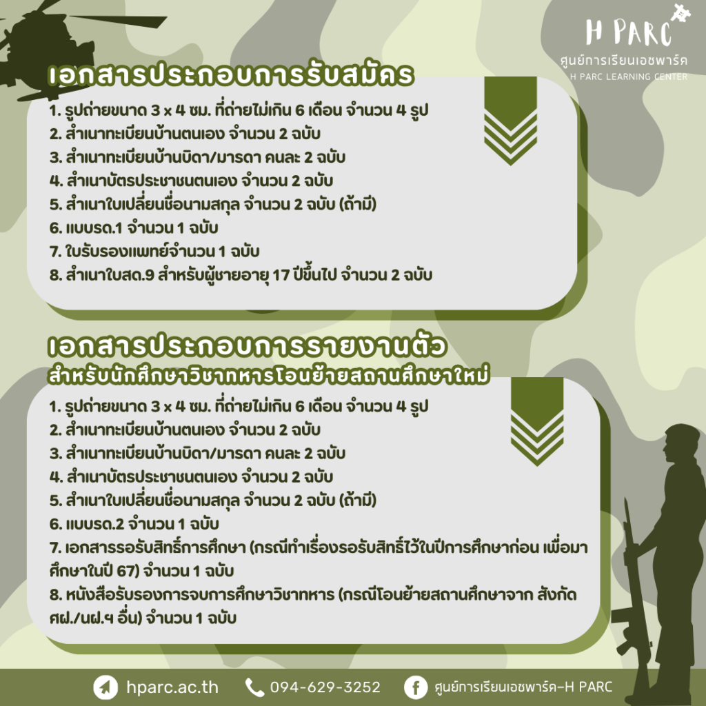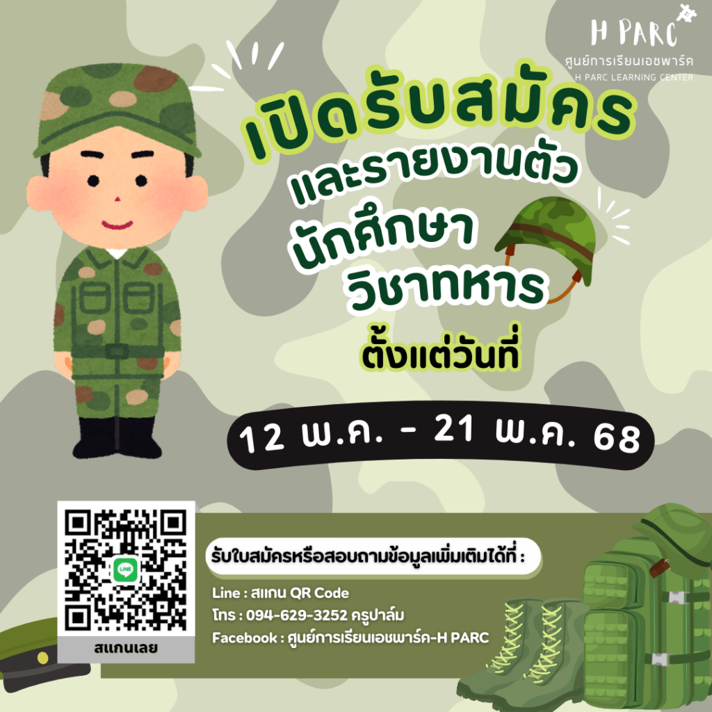ศูนย์การเรียนเอชพาร์คประชาสัมพันธ์การเปิดรับสมัครและรายงานตัวนักศึกษาวิชาทหาร (รด.)![]()