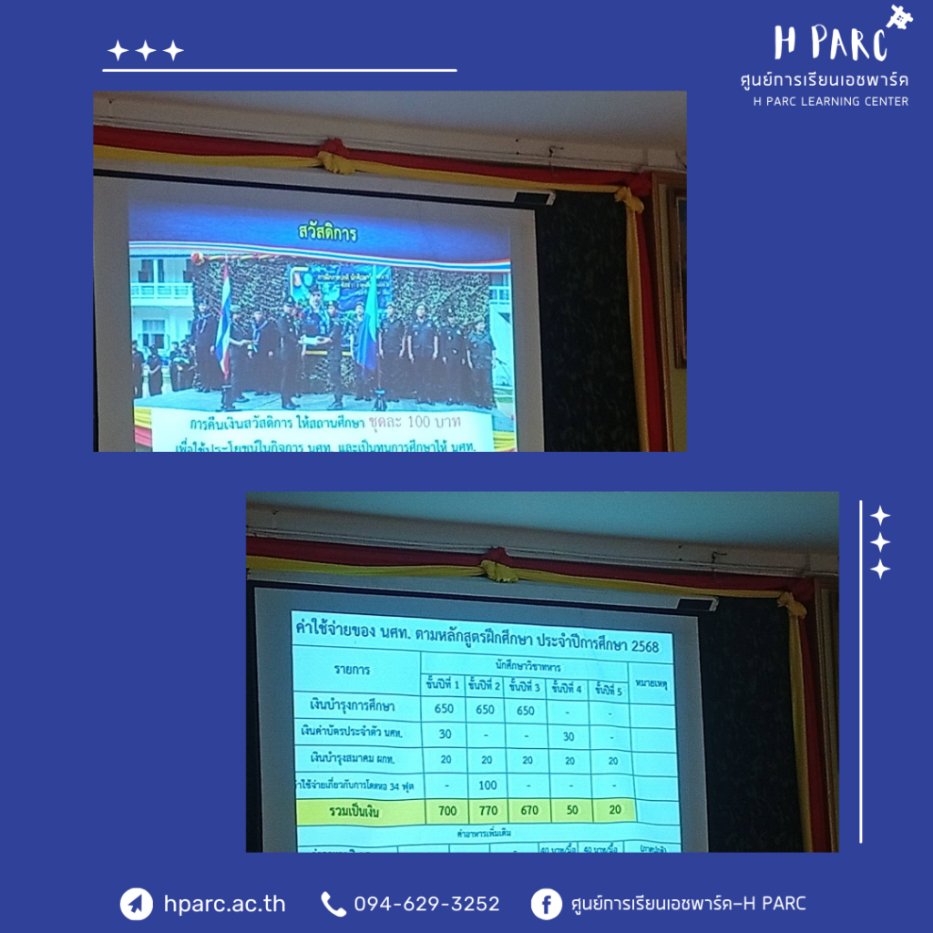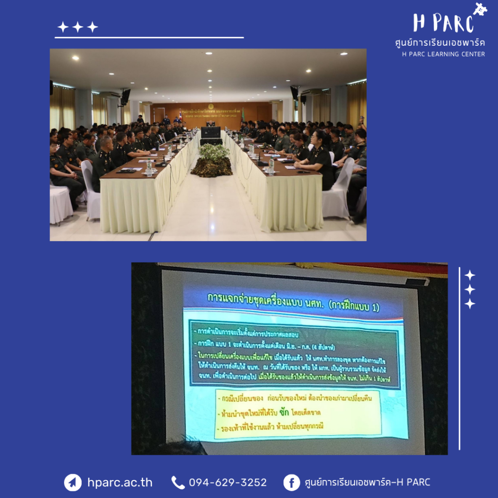 ศูนย์การเรียนเอชพาร์คได้มอบหมายให้ อ.วีระ ศรีสุข และ อ.ณัฐการณ์ ปิยะเวชการ เข้าร่วมการประชุมมอบนโยบายการฝึกนักศึกษาวิชาทหารประจำปีการศึกษา 2568 เพื่อให้สถานศึกษาสามารถวางแผนให้สอดคล้องกับแผนการฝึกนักศึกษาวิชาทหารประจำปีการศึกษา 2568 และเพื่อให้การฝึกของนักศึกษาวิชาทหารเป็นไปด้วยความเรียบร้อย โดยการประชุมจัดขึ้น ณ ห้องประชุมหน่วยฝึก ศูนย์การฝึกนักศึกษาวิชาทหาร มณฑลทหารบกที่ 33 อำเภอเมือง จังหวัดเชียงใหม่
