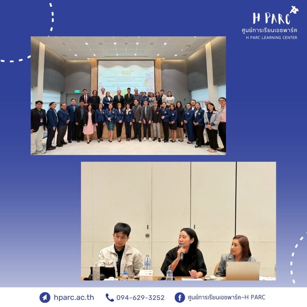 นางสาวภัสจณา งามทิพากร ผู้อำนวยการศูนย์การเรียนเอชพาร์ค และนางสาวจิลล์ พรมดี อาจารย์ของศูนย์การเรียน ฯ ได้เข้าร่วมการประชุมเชิงปฏิบัติการพัฒนาเครือข่ายการจัดการศึกษาตามมาตรา 12 โดยศูนย์การเรียนสถานประกอบการ เพื่อส่งเสริมการเรียนรู้เพื่อการสร้างรายได้ (Learn to Earn) ที่มุ่งเน้นการส่งเสริมการเรียนรู้และทักษะอาชีพให้แก่เด็กและเยาวชนที่หลุดจากระบบการศึกษา