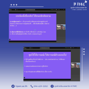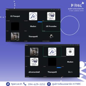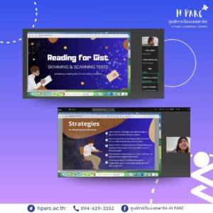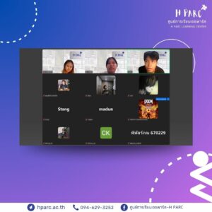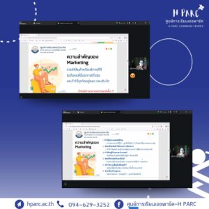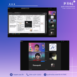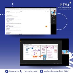 กิจกรรมการเรียนการสอนเสริมสำหรับผู้เรียนศูนย์การเรียนเอชพาร์ค พบครูที่ปรึกษาHParc INNO TOOL ม.ปลาย- อ.จิลล์ เป็นผู้สอน ผ่านทางโปรแกรม Zoom, เรียนเสริม Work Skill – Marketing – อ.นิ และ Apply Academic Skill / ชั่วโมงassignment (บูรณาการวิชาการ) – อ๋อมและอ.ปาล์ม เป็นผู้สอน