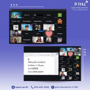 กิจกรรมการเรียนการสอนเสริมสำหรับผู้เรียนศูนย์การเรียนเอชพาร์ค พบครูที่ปรึกษา Consult Project รายงานความคืบหน้า project – อ.จิลล์, กิจกรรมปีใหม่ จับฉลากของขวัญ – อ.จิลล์ และ เรียนเสริม Life&Future Skill App for Creative – ครูโฮป